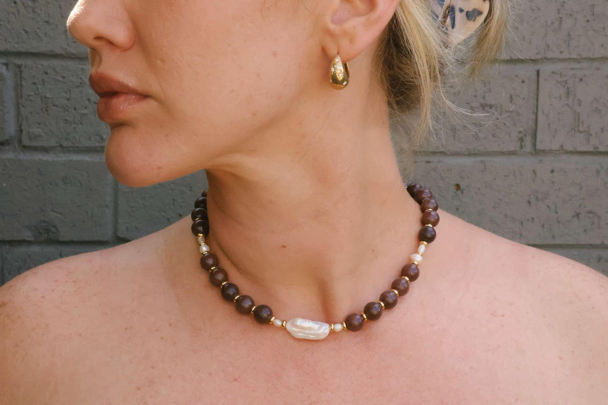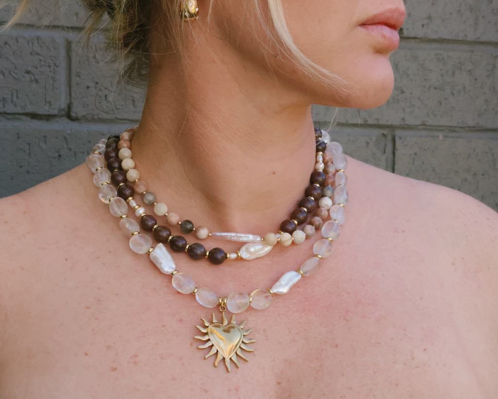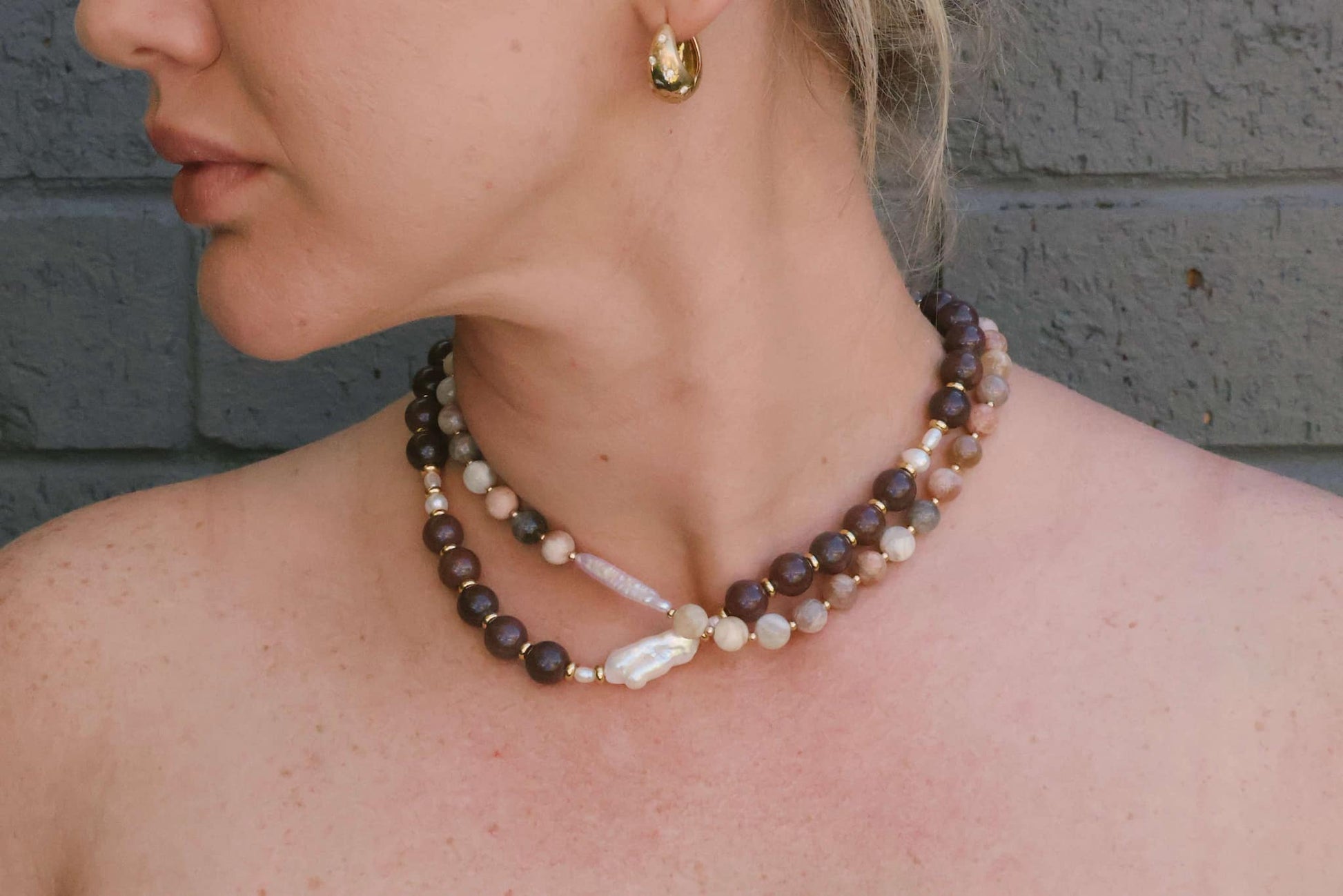 Delicious chocolate toned purple amethyst, with a collection of small and large fresh water pearl placed through out the gemstones.