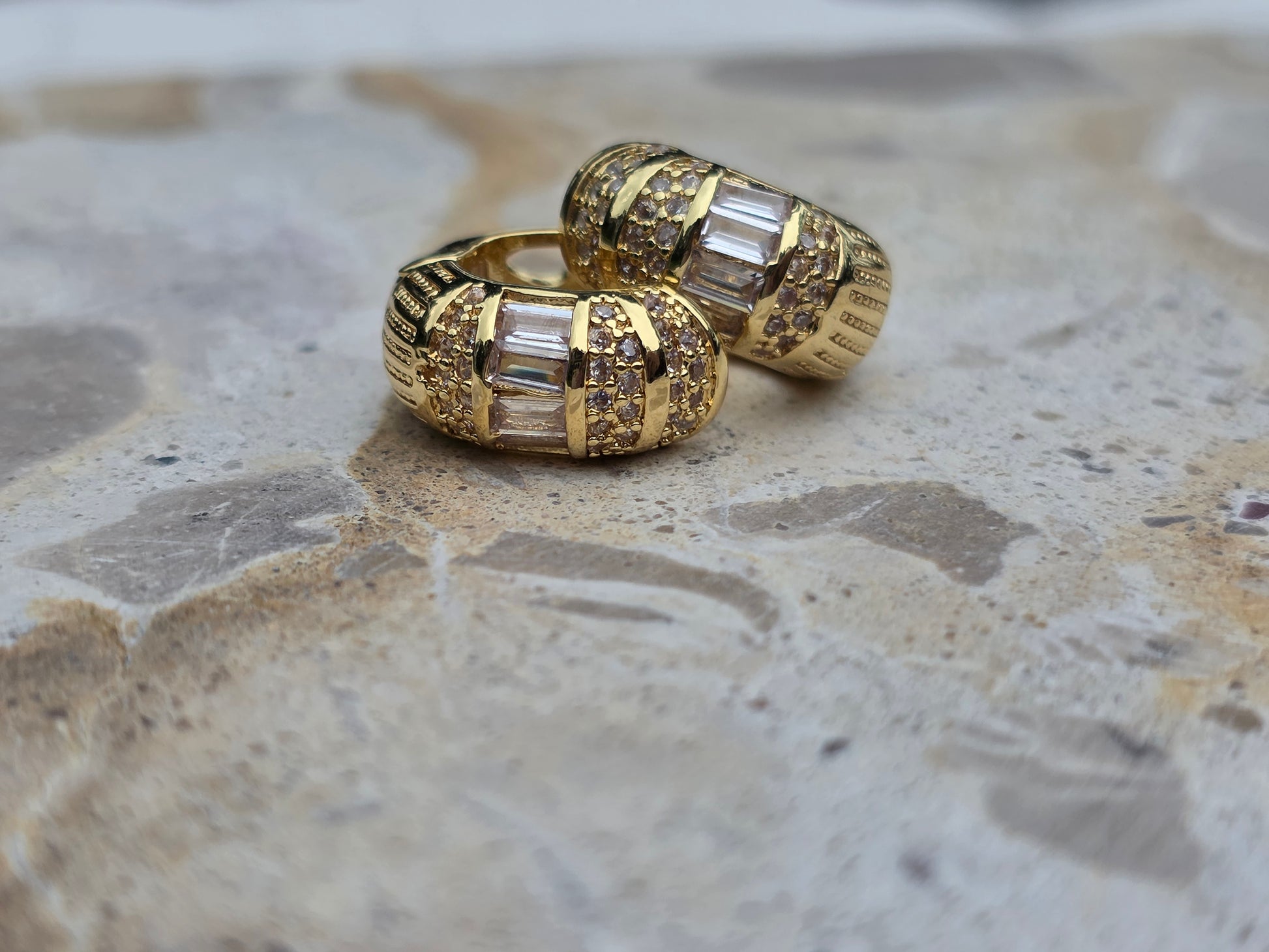 A chunky huggie that packed with different shaped and sized stone. Layer her for a more wow effect.